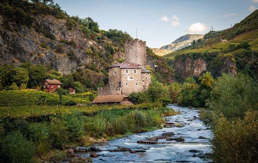 Huis naast oud kasteel bergnatuur online puzzel.