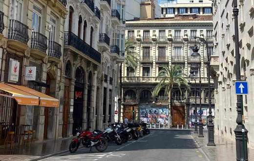 Oświetlona słońcem ulica z palmami
