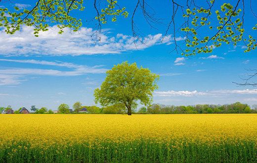 flower field with tree
